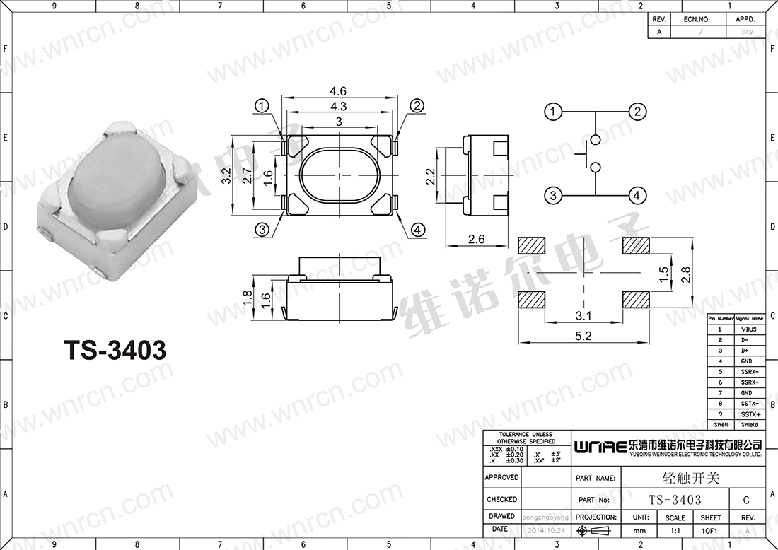 插脚轻触开关