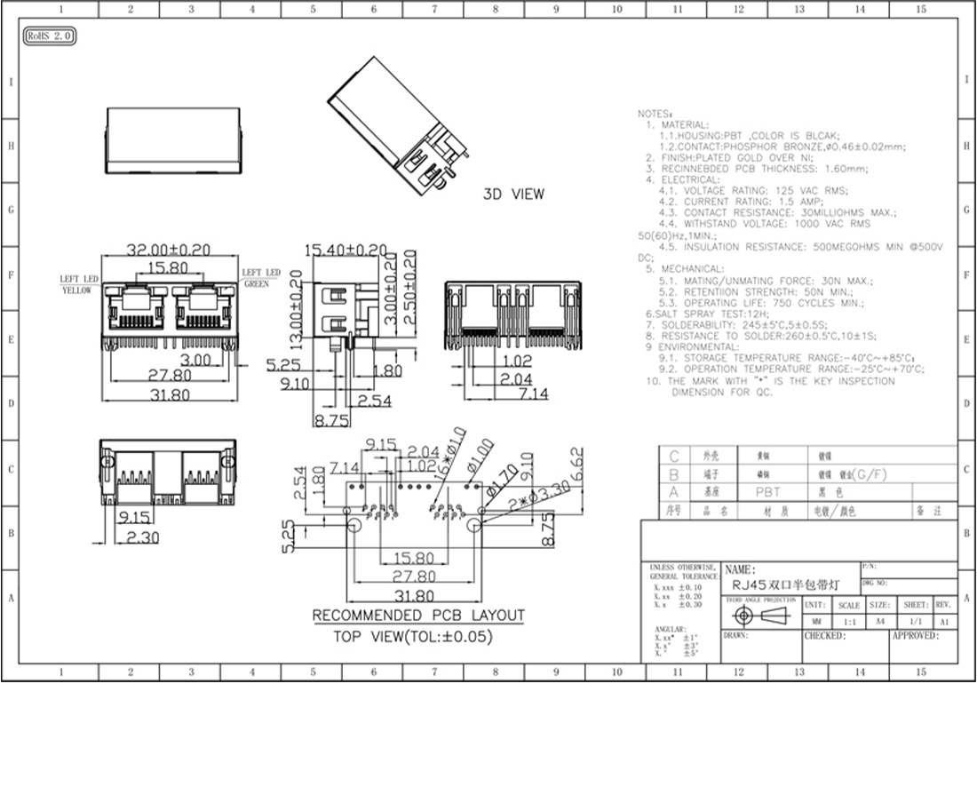 RJ45-56-1X2半包带灯