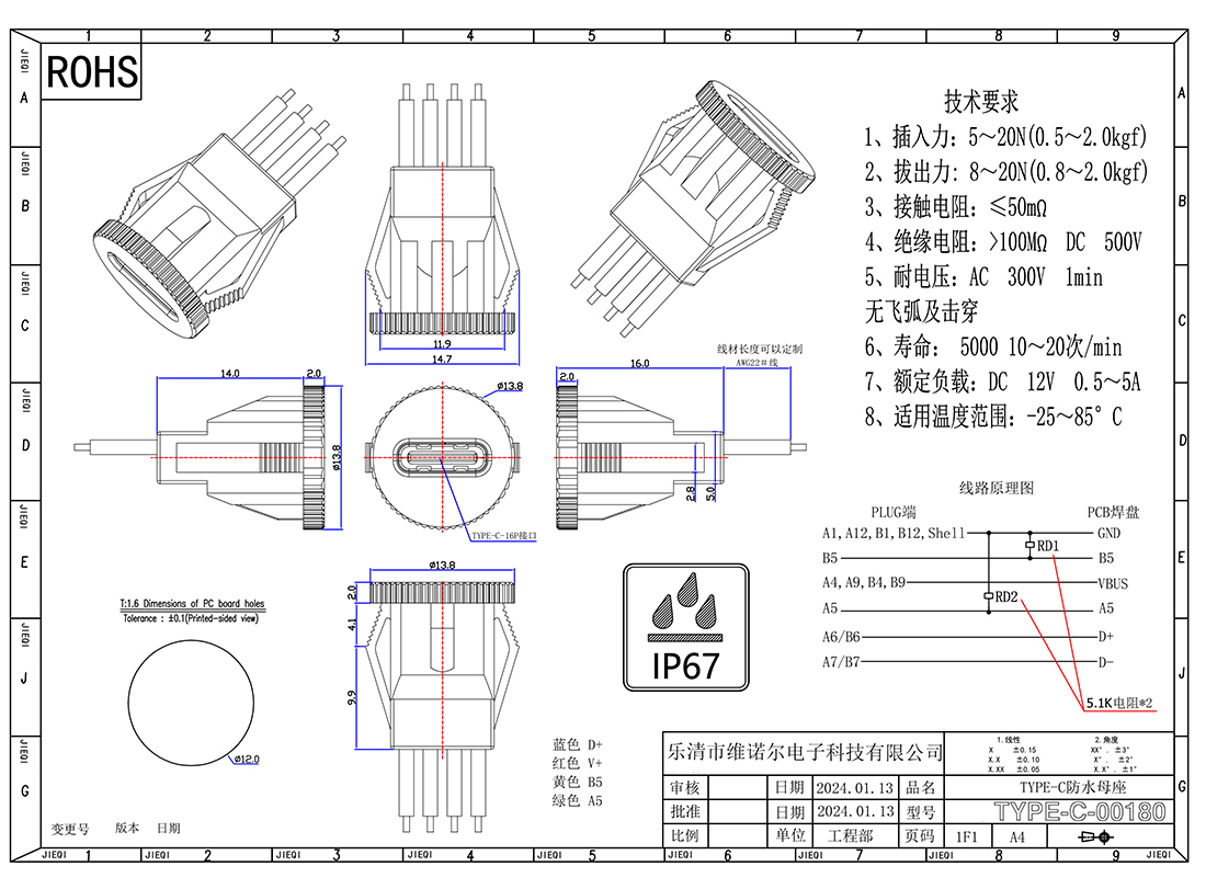 防水磁吸充电连接器