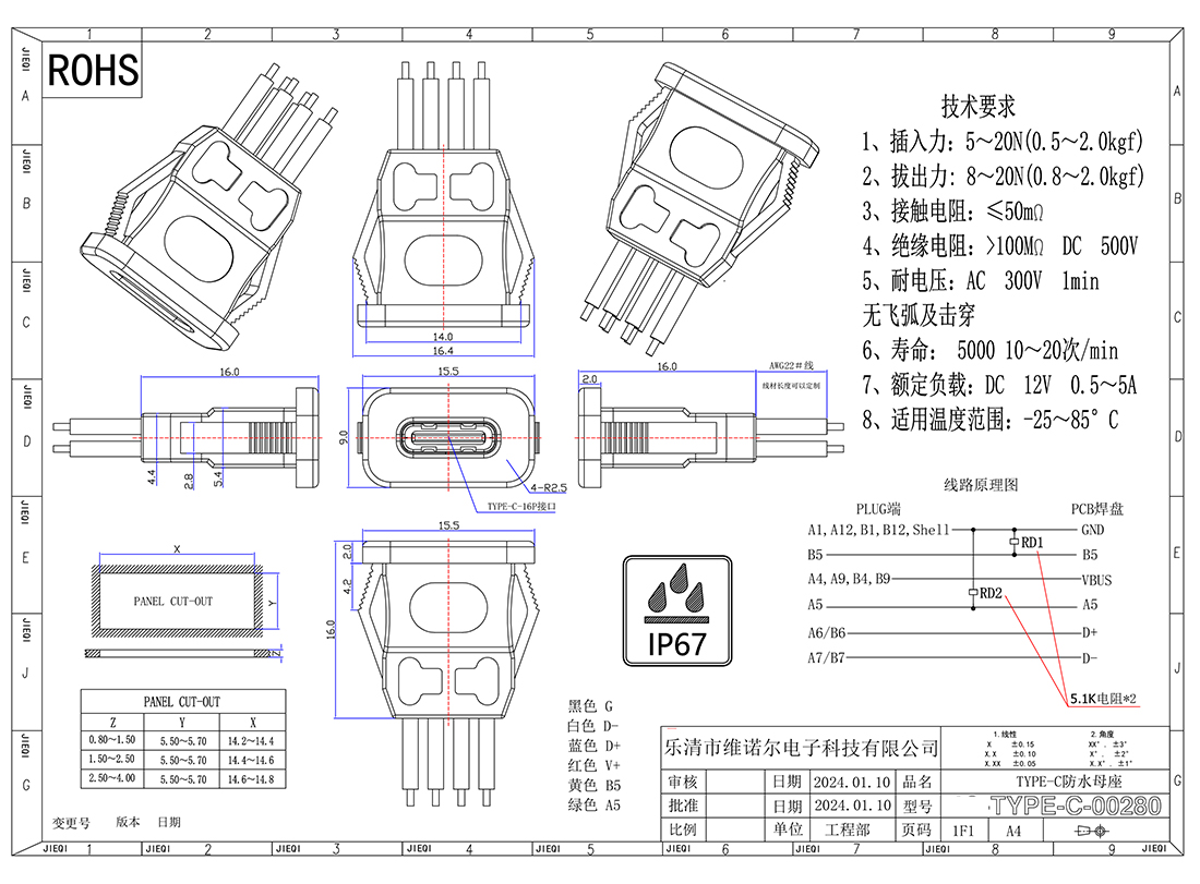 防水磁吸充电连接器