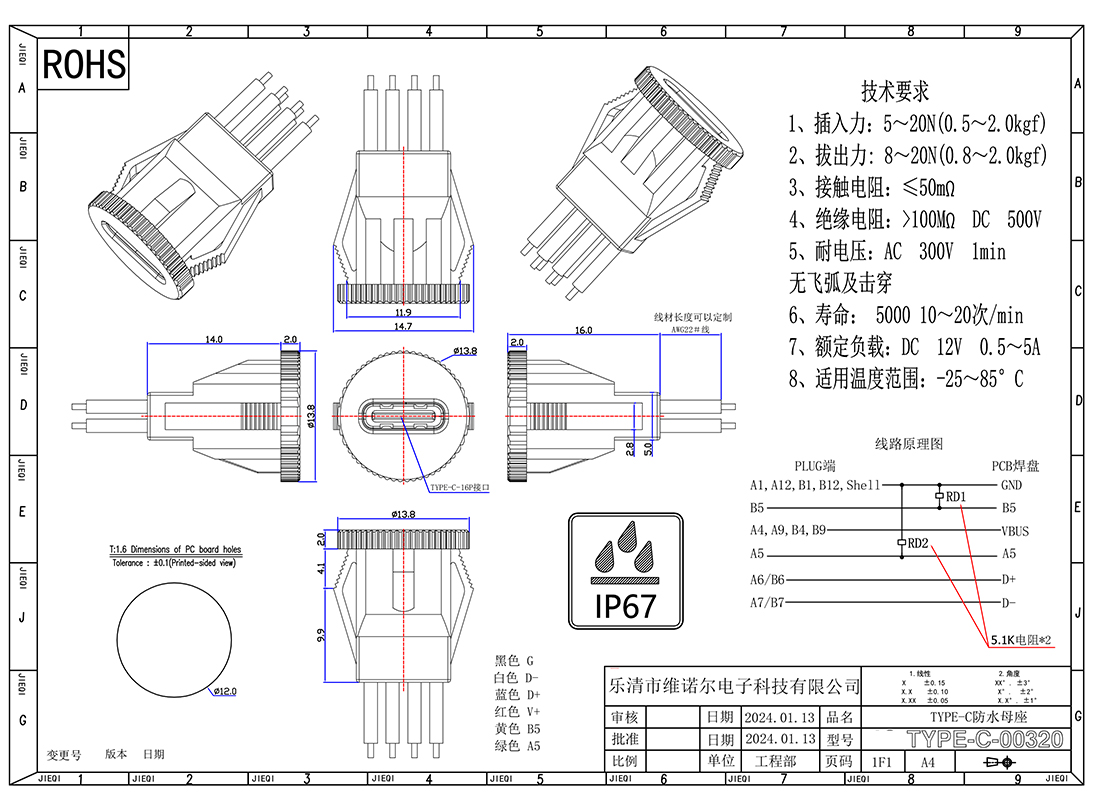 防水磁吸充电连接器
