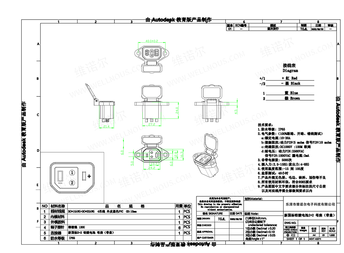 DC母座带线