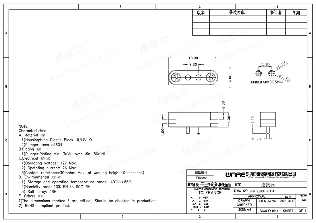 防水磁吸充电连接器