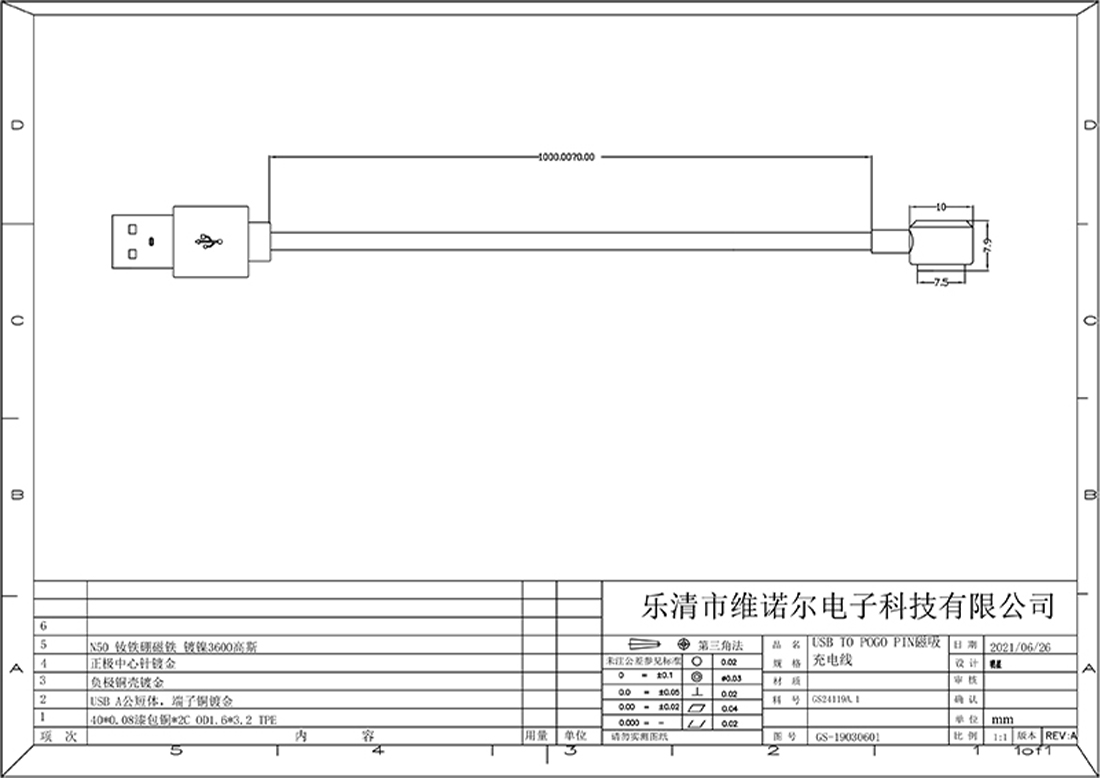 USB磁吸连接线
