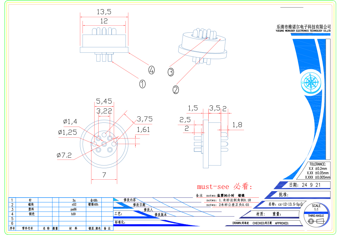 防水磁吸充电连接器